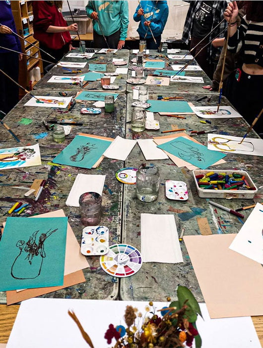Inglês e artes (cerâmica, modelagem em 3D, pintura a óleo, sombreamento a lápis e confecção de máscaras).