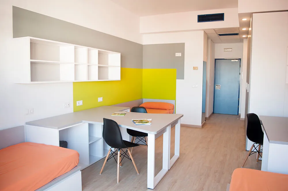 A residência é composta por quartos triplos, cada um com o seu próprio banheiro completo. Todos os quartos são exteriores e a maioria possui uma pequena varanda. Os dormitórios também contam com acesso à internet sem fio e ar condicionado.
