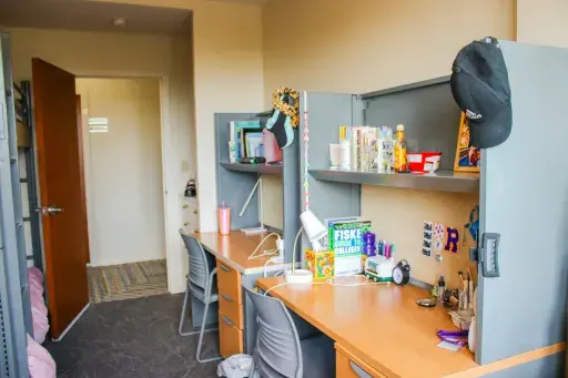 As acomodações da Archbishop Riordan High School contam com dormitórios totalmente mobiliados distribuídos em dois andares, banheiros coletivos modernos, Wi-Fi gratuito, lavanderia de uso livre e espaços de convivência equipados para estudo e lazer.